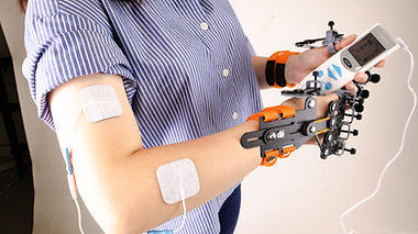 is a wearable, one-size-fits-all simulator set (one to be worn on each hand) which allows you to experience moderate to severe arthritis. You will experience reduced grip strength, reduced dexterity, restricted range of motion, reduced tactile sensation and discomfort or mild pain upon wearing the simulator.
